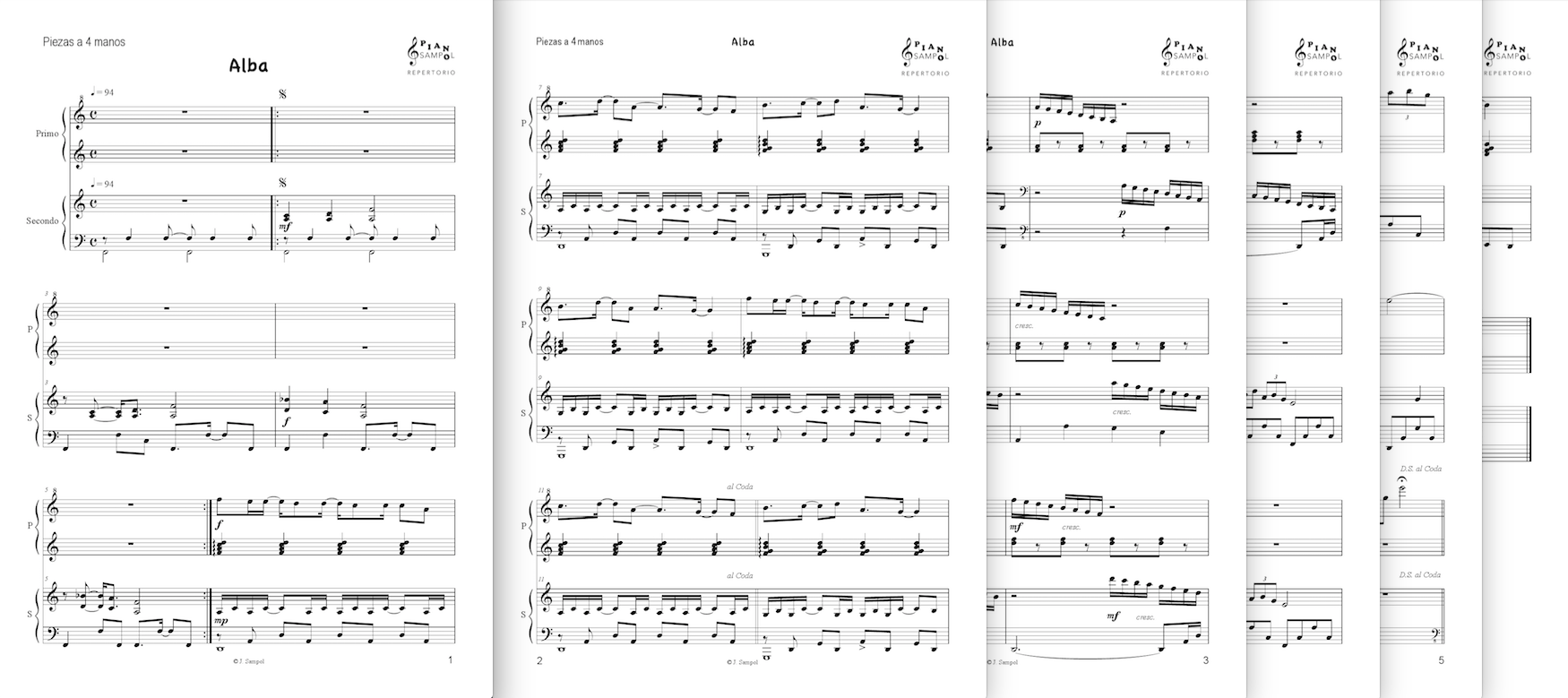 Este producto incluye tres partituras: Partitura general (6 páginas) + piano Primo (3 páginas) + piano Secondo (3 páginas).
